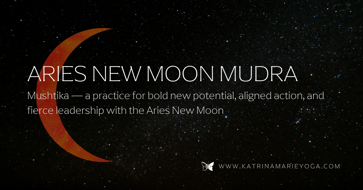 Above all, let this Aries New Moon remind you that your potential is bold, your action can be aligned, and your leadership is fierce and embodied. Take what you need and leave what you don't. Perhaps begin right here, with this mudra and the practices that support determination, courage, and the fire to become who you are here to be.