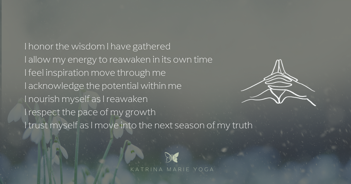 To close, take one full deep inhale and one easy exhale before releasing control of your breath and pausing to feel and sense. Then spend some time reading or declaring the following mantras and/or creating your own Imbolc mantras.